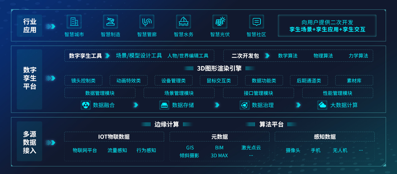 为工程、工业、交通、能源等行业快速构建全要素数字孪生体系,洞察业务实时动态,提升管理及运维效率。