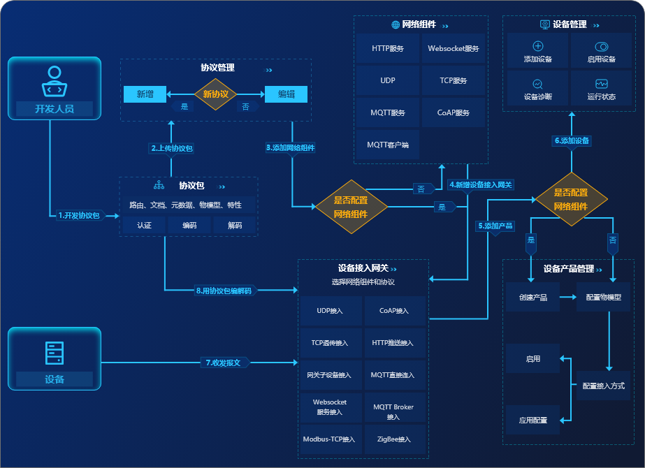 传输协议:包括但不限于 MQTT、HTTP、CoAP、LwM2M 等